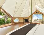 Гостям предлагаются современные комфортабельные шатры, интерьер которых выполнен в сдержанном скандинавском стиле. Внутри есть все необходимое для хорошего отдыха. Особое внимание уделяется кроватям — широким, оснащенным ортопедическими матрасами и электропростынями. Для каждого шатра предусмотрена открытая терраса, обставленная мебелью — столиком и креслами, которые отлично подойдут для посиделок на свежем воздухе. На случай непогоды имеются обогреватели, обеспечивающие обитателям шатра нужную температуру. Еще один приятный бонус — доступ к гостевому Wi-Fi.