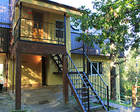 Двор просторный, утопает в растительности, для детей предусмотрена игровая площадка. Есть спортивная зона для активных игр на свежем воздухе. Недалеко находятся тенистые беседки для отдыха, а также зона для организации барбекю. При гостевом доме работает русская баня, тренажерный зал. Пункт проката предоставляет на прокат катамараны, байдарки, лыжи. Рядом с домом расположен пруд, где можно заняться любимым делом – рыбалкой.