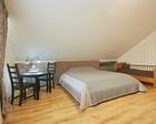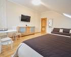 Фонд гостевого дома состоит из 4 комфортабельных номеров. Все они выполнены в европейском стиле. Комнаты просторные, есть удобная мебель, современная техника. Благодаря панорамным окнам, в помещение проникает большое количество дневного света. Есть ванная комната, оснащенная современной душевой системой и унитазом. Для отдыха большой компанией предусмотрен просторный номер «Семейный».