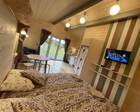 Проживают гости в комфортабельных шале с уютными и оригинально оформленными номерами. В номерах установлены телевизоры. В гостевом доме имеется кухня, в которой установлена плита для приготовления пищи. Есть холодильник и микроволновка. В распоряжении отдыхающих общие ванные комнаты и отдельные комнаты для мытья.
