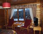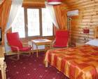 На территории комплекса построено 3 деревянных коттеджа. Большой дом разделен на двухместные номера с удобствами, класса «Стандарт» или «Люкс». Еще два домика стоят отдельно, один из них на 6 человек, второй на 4 спальных места.