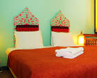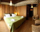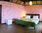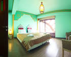 Все декорации: витражи, роспись по ткани – повторяют восточные мотивы. Бамбук и пальмы усиливают впечатление.