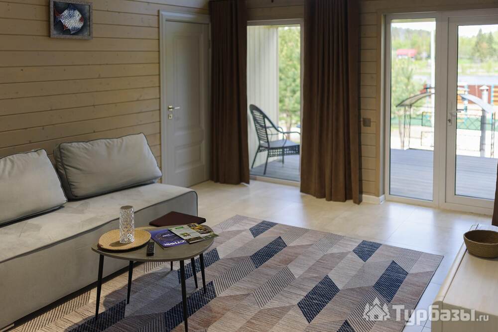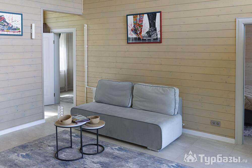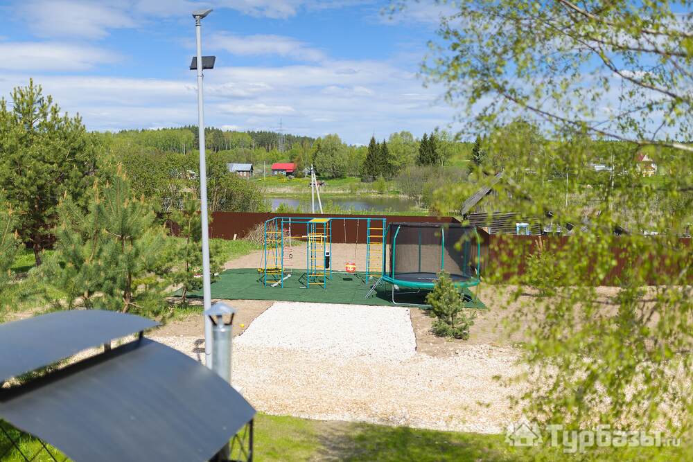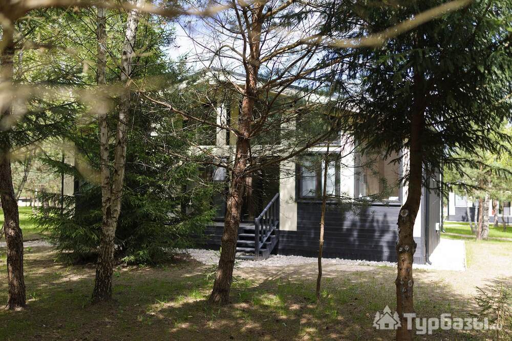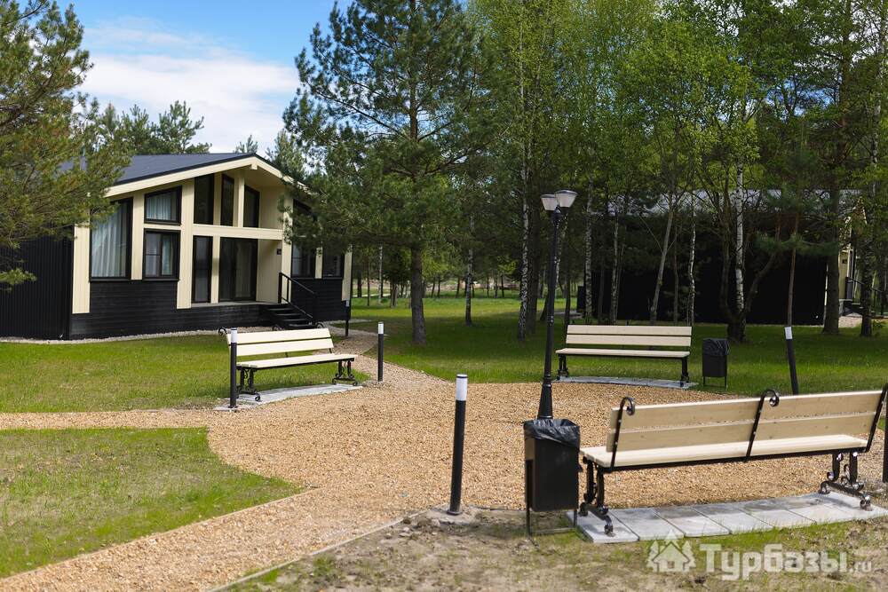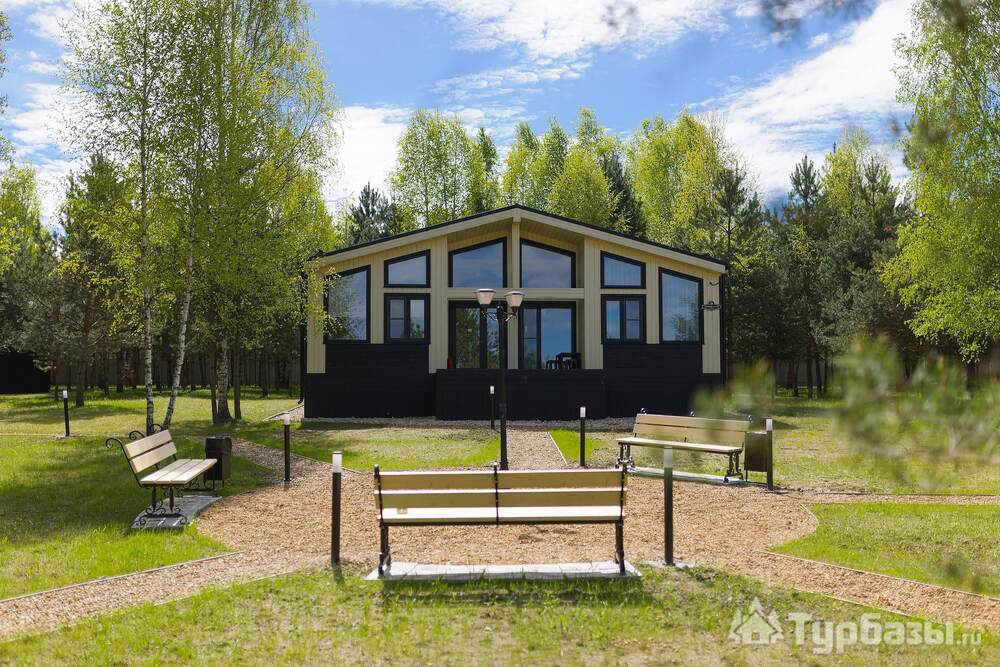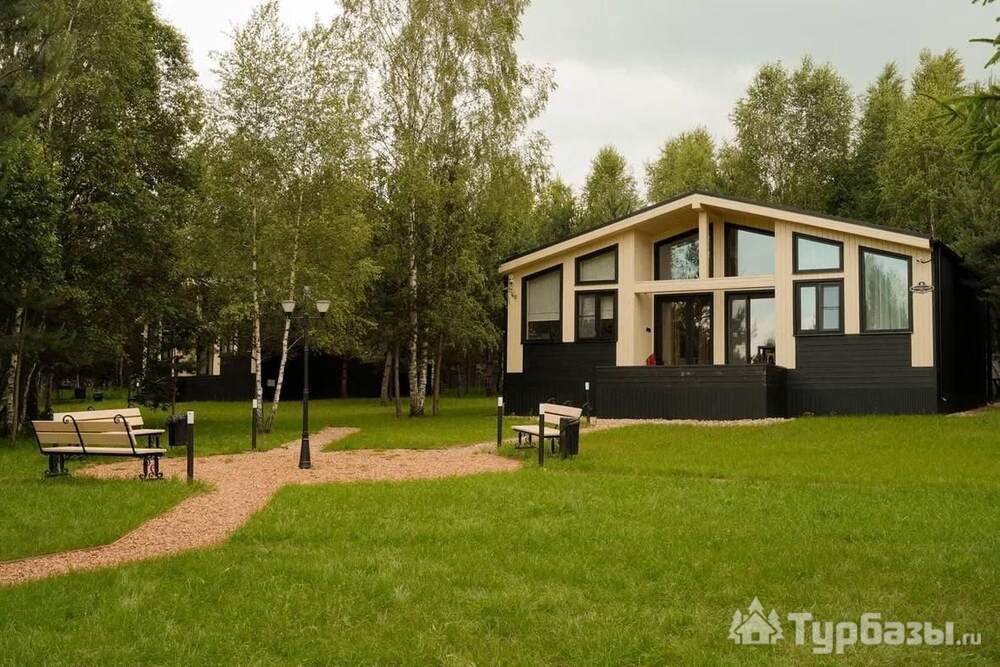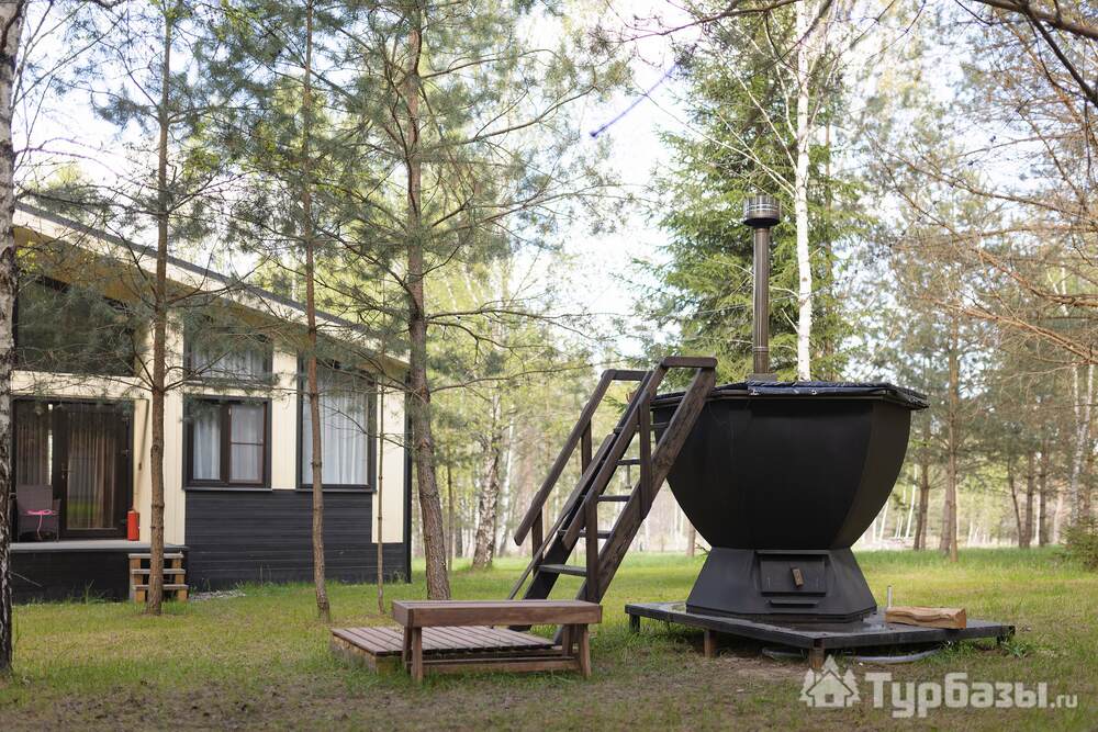 На территории — несколько типов домов: «Скандинавия» (комфортный дом 100 м2 на 4–6 гостей), «Усадьба» (премиальный дом 250 м2 для больших компаний) и «Дом для двоих» с панорамными окнами — варианты как для пар, так и для больших семей. Работает банный комплекс (135 м2), доступны банные чаны и SPA-услуги с травяными чаями и медом. Территория продумана: тропинки для прогулок, веранда, детская площадка, очаги для вечеров у костра. При желании можно посетить банный комплекс без проживания.