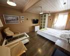 Гостей расселяют в номерах гостиницы и коттеджей. Отопление автономно, есть горячее и холодное водоснабжение, ночью, с 01:00 до 07:00, электроэнергия отключается.