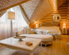 В отеле предоставляется обслуживание на высоком уровне, в распоряжении гостей – развитая инфраструктура и современный номерной фонд, предполагающий размещение всех гостей в уютных номерах и современных коттеджах.