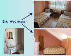 На территории коттеджа есть бассейн 2,5 х 6 м., глубиной 1,50 м, беседки, качеля. Для маленьких гостей, оборудована игровая площадка с игрушками, батутом и мини-бассейном. Номера у нас уютные, просторные, с удобными матрасами, с собственной ванной комнатой, с большим холодильником, кондиционером и телевизором. Есть как двухместные номера, так и большие семейные (двухкомнатные).