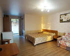 На таком отдыхе вы проведете время с пользой, избавитесь от напряжения, получите заряд энергии и восстановите силу своего организма. В домиках для отдыха вы обнаружите все удобства – качественную и удобную мебель, туалет и ванну, кондиционер, ТВ, холодильник и даже коврики для отдыха на пляже. С части номеров пансионата можно наблюдать за прекрасным морем, еще в некоторых номерах имеется гидромассаж и удобные кровати для двоих человек.