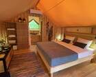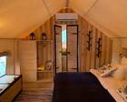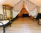 Постояльцы отеля размещаются не в обыкновенных палатках, а в комфортных тент-хаусах. Каждый номер обеспечен собственным туалетом и ванной комнатой. Внутри есть кондиционер, позволяющий спрятаться от зноя. Hand-made мебель подарит новые ощущения. Остаться на связи поможет Wi-Fi, а во время проверки электронной почты и соцсетей всегда можно насладиться чашкой горячего напитка, ведь в номерах есть чайники и кофемашины. В завершение картины все тенты располагают просторными верандами. Чтобы защитить уединение и личный покой каждого гостя, домики расположены на расстоянии двадцати метров друг от друга.