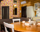 В отдельно стоящем домике помещение ресторана. Гостям подают традиционные русские блюда и с использованием рецептов европейской кухни. Еду готовят из экологически чистых продуктов.