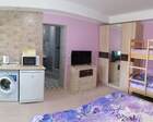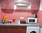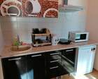 Кухня и стиральная машинка. Кухня полностью оборудована для приготовления пищи (мойка, вытяжка, плита, электрочайник, микроволновка), также вся посуда для приготовления еды и питания.