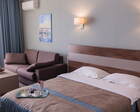 Гостиница принимает туристов со всех регионов нашей страны. Можно приехать с семьей или друзьями. До пляжа можно дойти пешком всего за 5 минут. В самом отеле есть просторный бассейн. При чистке бассейна не используется хлор. Данная система соответствует европейским стандартам качества.