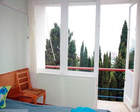Корпус санатория в 6 этажей располагает хорошо оборудованными номерами. Из окон, выходящих на юг, открывается великолепный морской пейзаж с легендарными скалами Адалары и сказочным Аю-дагом. С севера просматривается кряж Крымских гор, где гордо белеет «Беседка ветров».