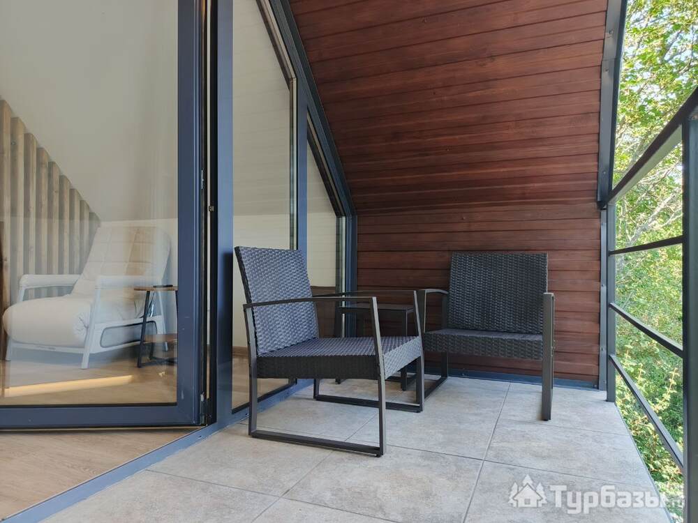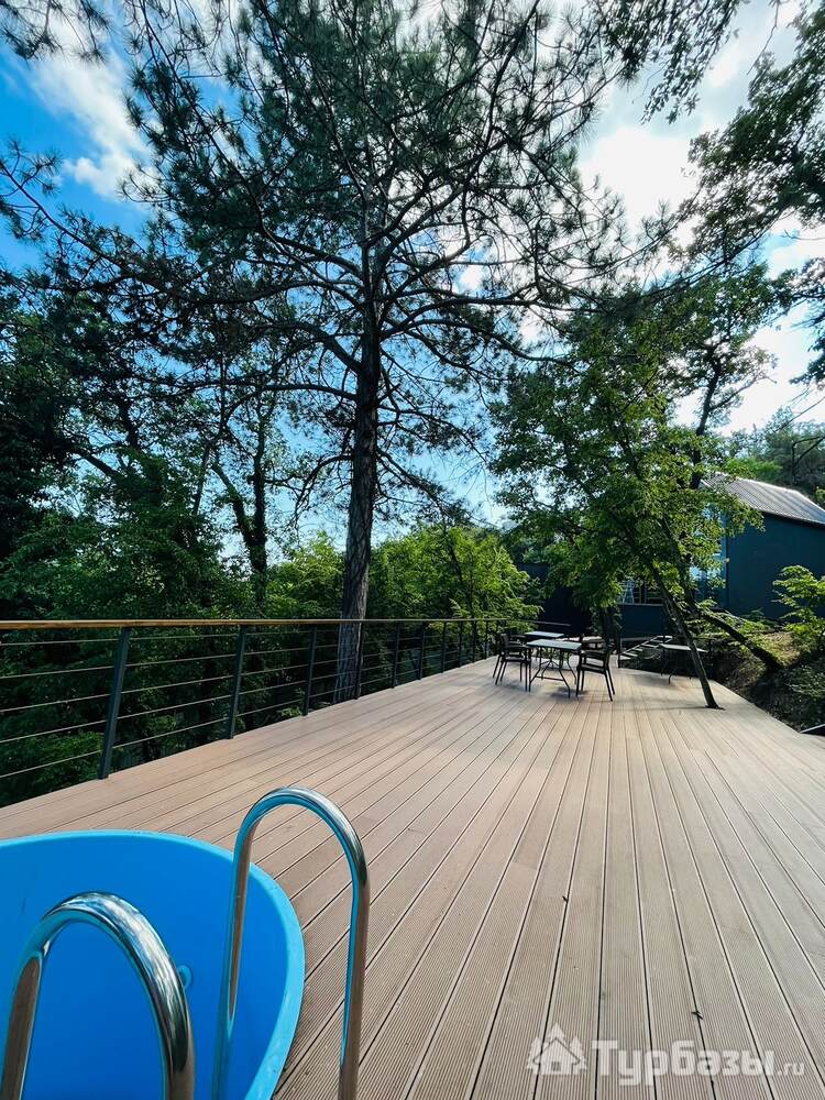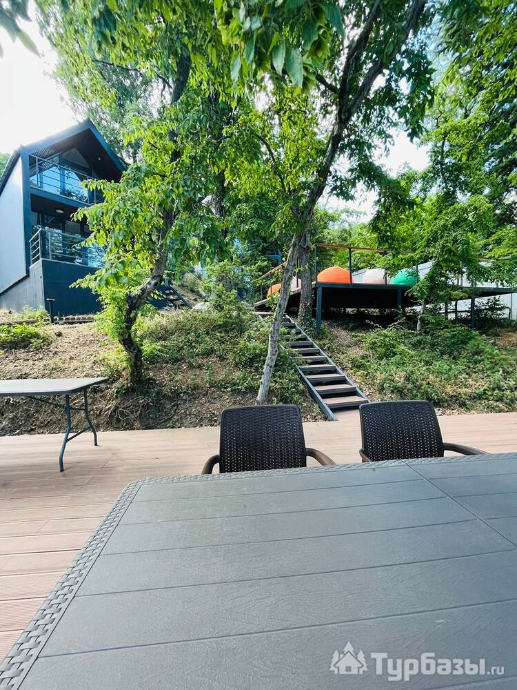 На территории обустроено несколько террас для комфортного отдыха. Верхняя терраса — летний кинотеатр с экраном и проектором и пуфами, внизу широкая терраса с купелью, столами, шезлонгами, ночным освещение для вечерних посиделок. Подразумевается совместное использование всеми гостями террас и доп. аксессуаров. Также имеется 2 мангала с шампурами и решетками для рыбы и казан. На территории расположено подсобное помещение со стиральной машиной, утюгом и гладильной доской.