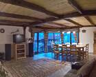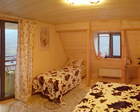 В доме есть камин и большие панорамные окна, из которых можно полюбоваться горными ландшафтами. В коттедже есть все необходимое для комфорта постояльцев.