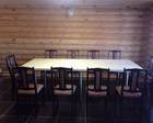Комфортно проживать предлагается в двухэтажном комплексе площадью 150 м2, с автопарковкой и зоной для мангала, территория комплекса огорожена. Первый этаж занимают кухонное помещение, столовая, гостиная, баня (на дровах), душ и санузел, второй этаж – четыре спальни. Кухни оснащены всем, что может понадобиться для самостоятельного кулинарного творчества.