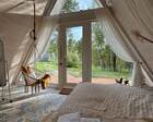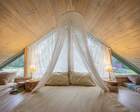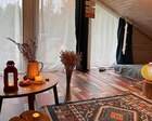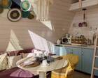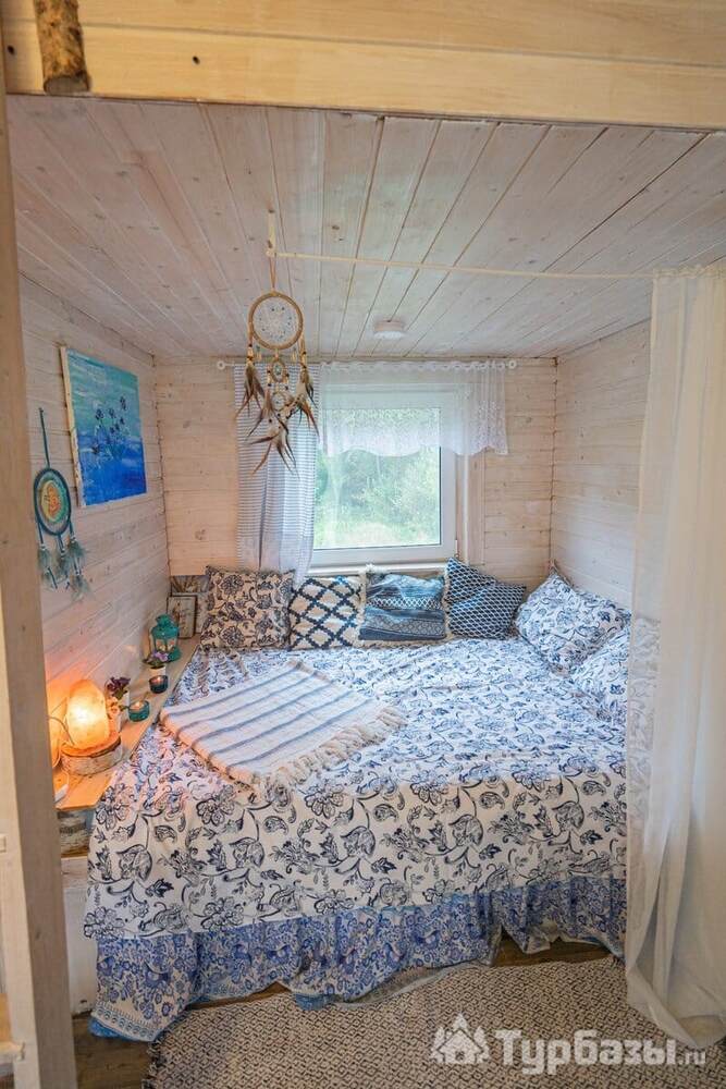 Жильё в усадьбе оформлено как коллекция «сказочных» домиков с авторскими интерьерами — от камерных домиков для двоих до больших коттеджей для компаний. Каждый домик имеет свой концепт (Изумруд, Рубин, Прованс, Бохо, Облачный и др.), но общий подход один: натуральные материалы, живой дровяной камин, тёплые полы, панорамные окна и продуманная отделка. В некоторых домиках предусмотрены просторные лофты с дополнительными спальными местами; в отдельной категории — «Радужный» и большие коттеджи для семей и коллективных заездов. Для гостей доступны и нестандартные варианты — автодомик на поляне для романтиков-кемперов.