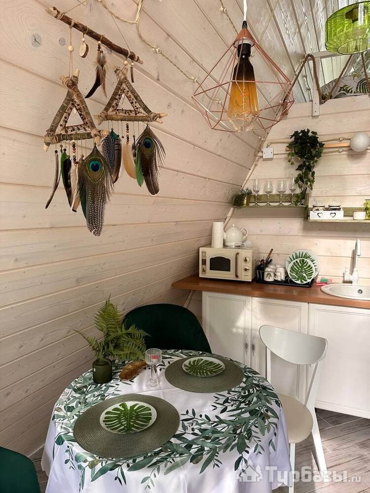 В каждом доме вы найдёте оборудованную кухню или кухонный уголок, базовый набор посуды, постельное бельё и средства гигиены; часть домиков допускает размещение с животными за доплату, а некоторые (Изумруд, Рубин) закрыты от размещения с питомцами ради сохранения элитного интерьера.