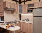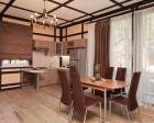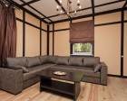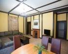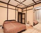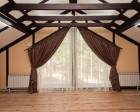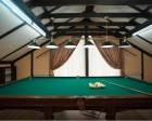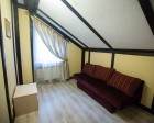 Первый этаж: кухня: холодитльник, микроволновая печь, чайник, газовая плита, вытяжка, обеденный стол; гостинная комната с камином: диван, журнальный столик, телевизор, спутниковые каналы и DVD-плеер с караоки; баня и ванная комната; одна спальная комната с двуспальной кроватью (двумя раздельными), двумя прикроватными тумбочками, шкафом-купе и шкафом с полками; терасса. Второй этаж: бильярд; комната отдыха с диванами, журнальным столиком, двумя этажерками и другими элементами декора; две спальных комнаты с прикроватными тумбочками, тумбы для одежды, шкафы; ванная комната с душевой кабиной.