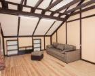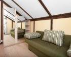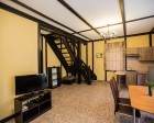 Первый этаж: кухня: холодитльник, микроволновая печь, чайник, газовая плита, вытяжка, обеденный стол; гостинная комната с камином: диван, журнальный столик, телевизор, спутниковые каналы и DVD-плеер с караоки; баня и ванная комната; одна спальная комната с двуспальной кроватью (двумя раздельными), двумя прикроватными тумбочками, шкафом-купе и шкафом с полками; терасса. Второй этаж: комната отдыха с диванами, журнальным столиком, двумя этажерками и другими элементами декора; две спальных комнаты, каждая из которых имеет прикроватные тумбочки, тумбы для одежды, шкафы; ванная комната с душевой кабиной.