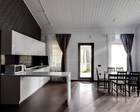 В коттедж входят: гостиная, совмещенная с кухней, раскладной диван, обеденный стол со стульями, телевизор, совмещенный санузел с душем, сауна, две изолированные спальни с двуспальной кроватью в каждой, терраса.