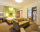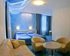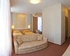 Во всех номерах возможно организовать дополнительное спальное место. Каждая комната оборудована ванной комнатой, туалетом, имеется теплый пол, интернет, телевизор. Утром для отдыхающих предусмотрено три вида завтрака в ресторане отеля. При желании здесь можно пообедать и поужинать, так же есть вегетарианское меню, для детей разработано особое питание. Ресторан оформлен в уютном интерьере, чувствуется теплая атмосфера. Здесь можно отметить любой праздник: свадьбу, день рождения, корпоративное мероприятие, выпускной. Банкетный зал вмещает до пятидесяти человек. Сотрудники отеля могут взять на себя всю организацию предстоящего мероприятия, придумать веселые конкурсы и предложить оформление зала.