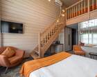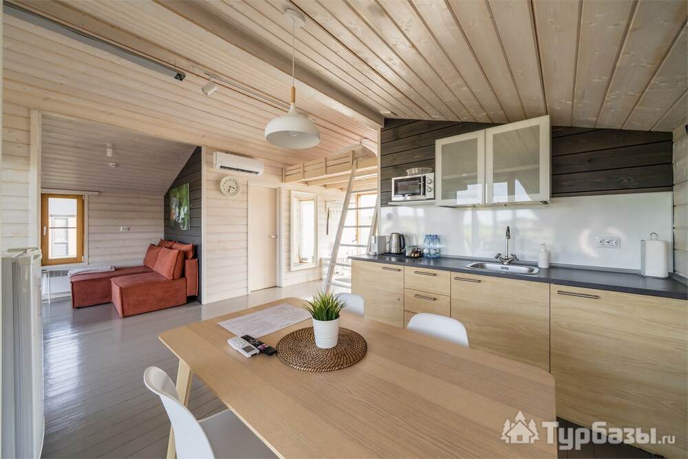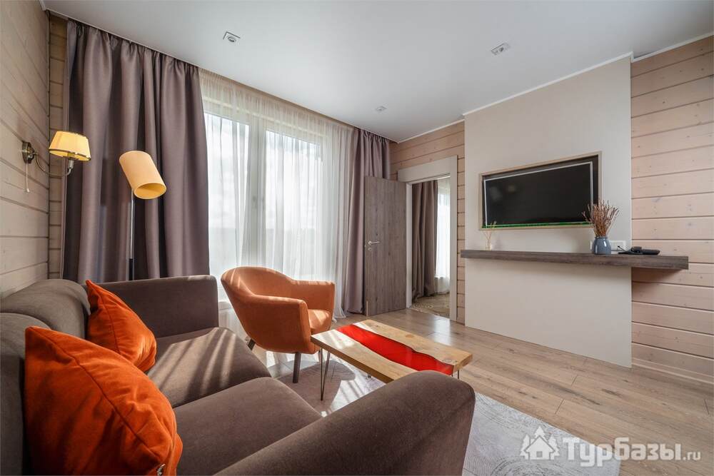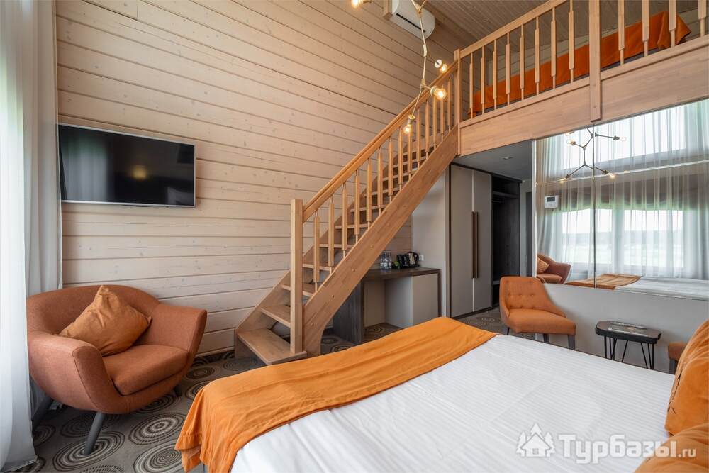 На территории работает четырёхзвёздочный отель и набор уютных бунгало/коттеджей — вариант размещения под любой формат: деловая поездка, семейный уик-энд или отдых с друзьями. Номера оформлены в современном стиле и рассчитаны на разные потребности гостей: стандартные комнаты, повышенные категории и сьюты; часть коттеджей оборудована собственными мангальными зонами и террасами. Завтраки обычно включены в стоимость размещения.