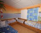 Двухэтажный дом на 10 человек: Большая веранда. 4 комнаты (3 двухместные – на 1-ом этаже, 1 четырехместная – на 2-ом), 6 односпальных кроватей и 2 двуспальные кровати. Кухня (мини), холодильник, чайник. Отопление печное (дрова для печки бесплатно). Душ и туалет на территории.
