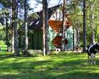 Для проживания предлагаются пять гостевых коттеджей с участками для пикников и мангальными зонами. Самый миниатюрный дом рассчитан на двоих с возможностью установки двух дополнительных спальных мест, самый большой (он сдвоен) – на 32 человека. Постройки уютны и современны, со всеми удобствами, отопление – печное. У озера в лесу обустроена кемпинговая площадка.