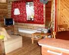 1-й этаж: гостиная (36 кв.м.), печь камин, диван, стол; кухня (эл.плита, чайник, холодильник, СВЧ, посуда; санузел (душ, туалет, полы с подогревом); спальня 4 чел (2сп.кровать и две 1-но сп.кровати). Эл. отопление. 2-й этаж: спальня с 2сп. кроватью.