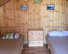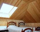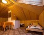 В коттедже есть кухня, зал с телевизором, на первом этаже 2 комнаты с двухспальными кроватями. На втором этаже 2 трехместные комнаты (2-спальная и 1-спальная кровати).