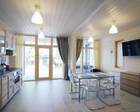 В доме есть всё для комфортного проживания: две спальные комнаты, видовые террасы, душевая, ванная комната, уютная гостиная, с раскладным диваном и обеденным столом. Кухня полностью оснащена современной техникой и посудой. В коттедже есть стиральная и посудомоечная машины, фены для волос, утюг, сушилка для белья и гладильная доска.