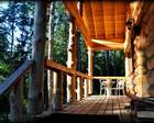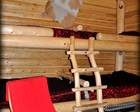 Две большие двуспальные кровати из массива сосны, над ними две односпальные.