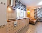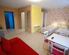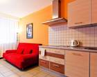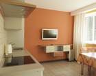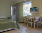 На мини-кухне: посуда, столовые и обеденные приборы, варочная панель и вытяжка, холодильник (в некоторых номерах есть посудомоечная машина). В номере: шкаф для одежды, две одноместные или одна двухместная кровать, диван. В каждом номере есть обеденный стол со стульями, телевизор и прихожая.