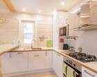 На 1 этаже - прихожая, кухня (газовая плита, духовка, микроволновая печь, чайник, тостер, кофе-машина, посуда для приготовления и сервировки на 10 персон), столовая, гостиная с камином, 2 спальни с двуспальными кроватями, санузел с душем, сауна, большая терраса.