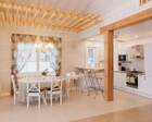 На 1 этаже - прихожая, кухня (газовая плита, духовка, холодильник, микроволновая печь, чайник, тостер, кофе-машина, посуда для приготовления и сервировки на 14 персон), столовая, гостиная с электрическим камином, кондиционер, 1 спальня с 2 двухъярусными кроватями, санузел с душем, сауна с комнатой отдыха, большая терраса.