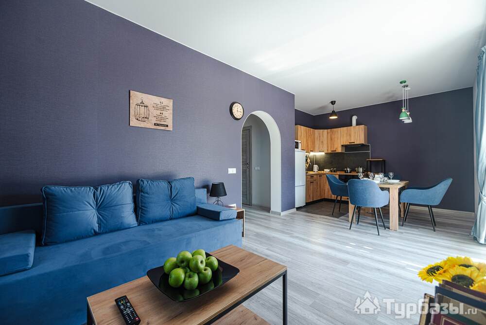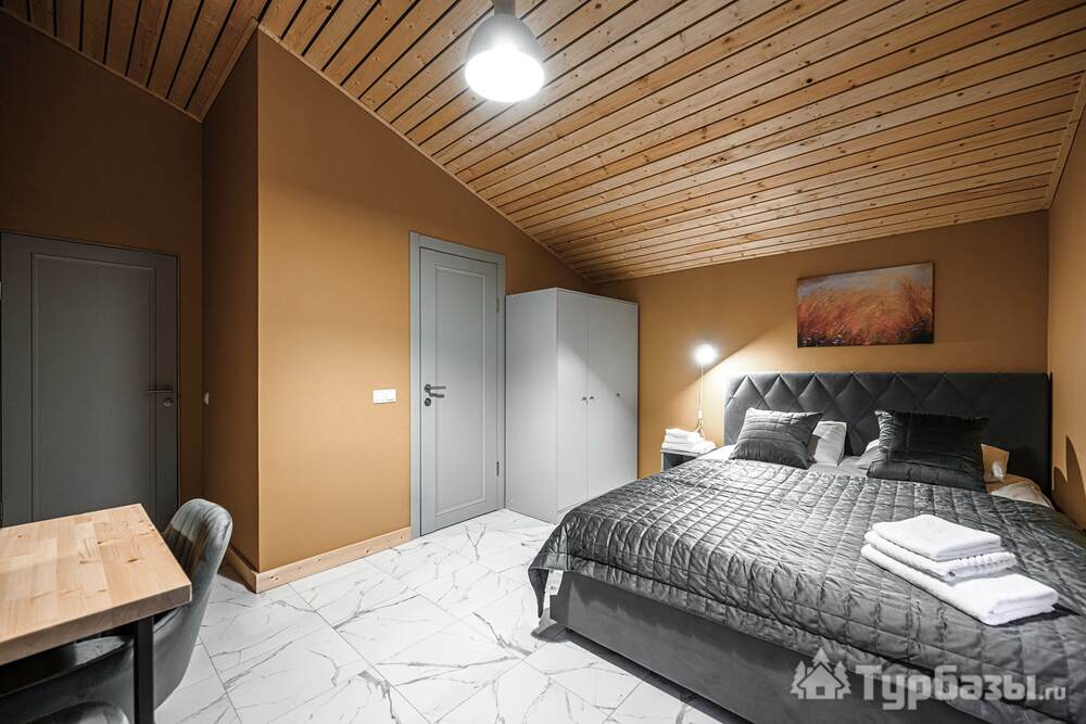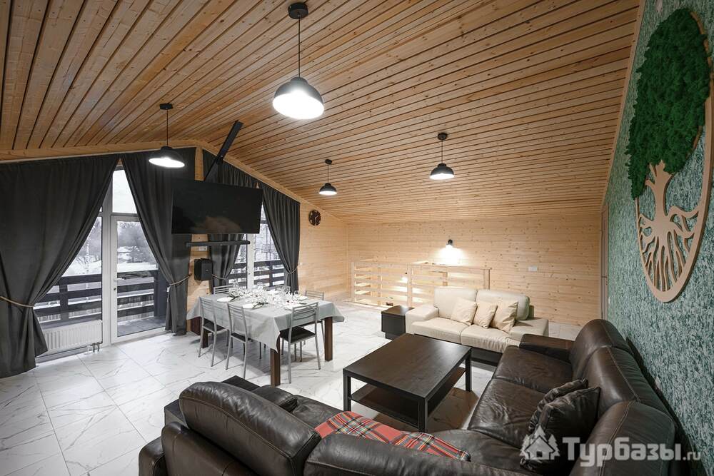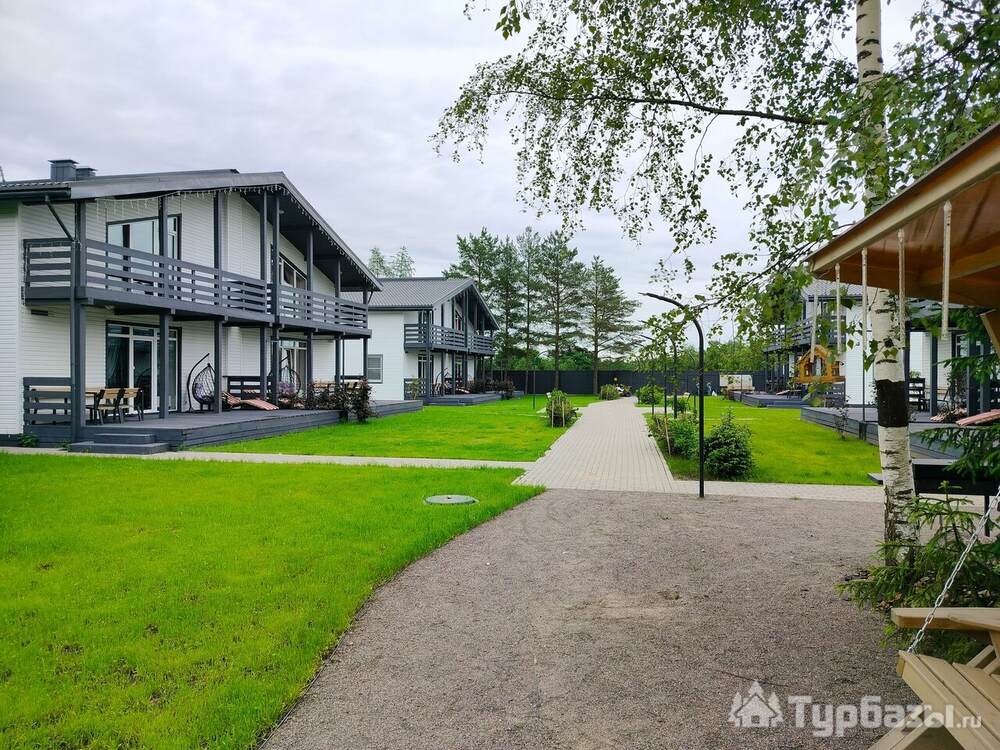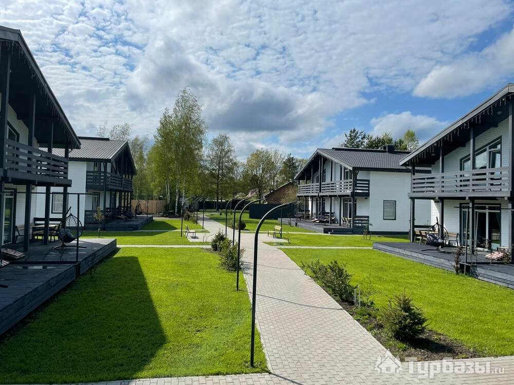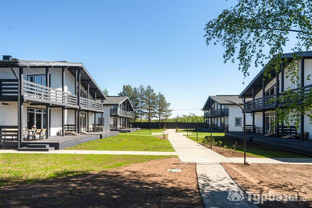 Комплекс состоит из набора отдельно стоящих коттеджей — 8–9 домов разной площади (стандартные домики ≈110 м², есть и расширенные варианты около 200 м²). Каждый коттедж спроектирован как семейный загородный дом: здесь несколько спален, просторная кухню-гостиная с выходом на террасу и два санузла в стандартном варианте. Номера и домики оборудованы всем необходимым для самостоятельного проживания — от кухонной техники до постельного белья и Wi-Fi; некоторые блоки оформлены тематически и носят названия классических российских писателей.