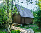 - Два мини-домика с видом на еловый лес. Установлены панорамные окна.