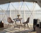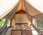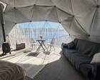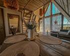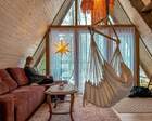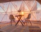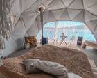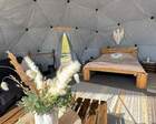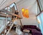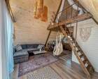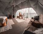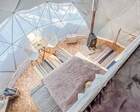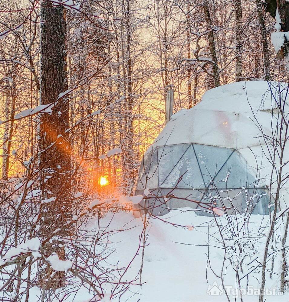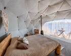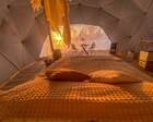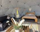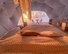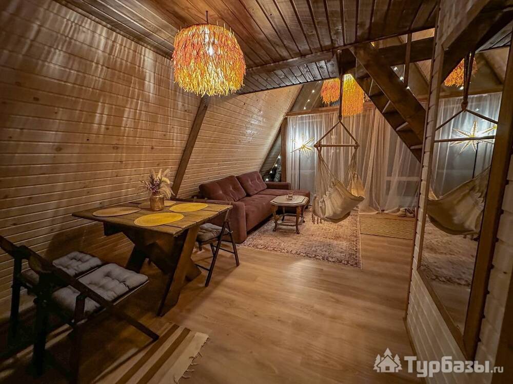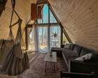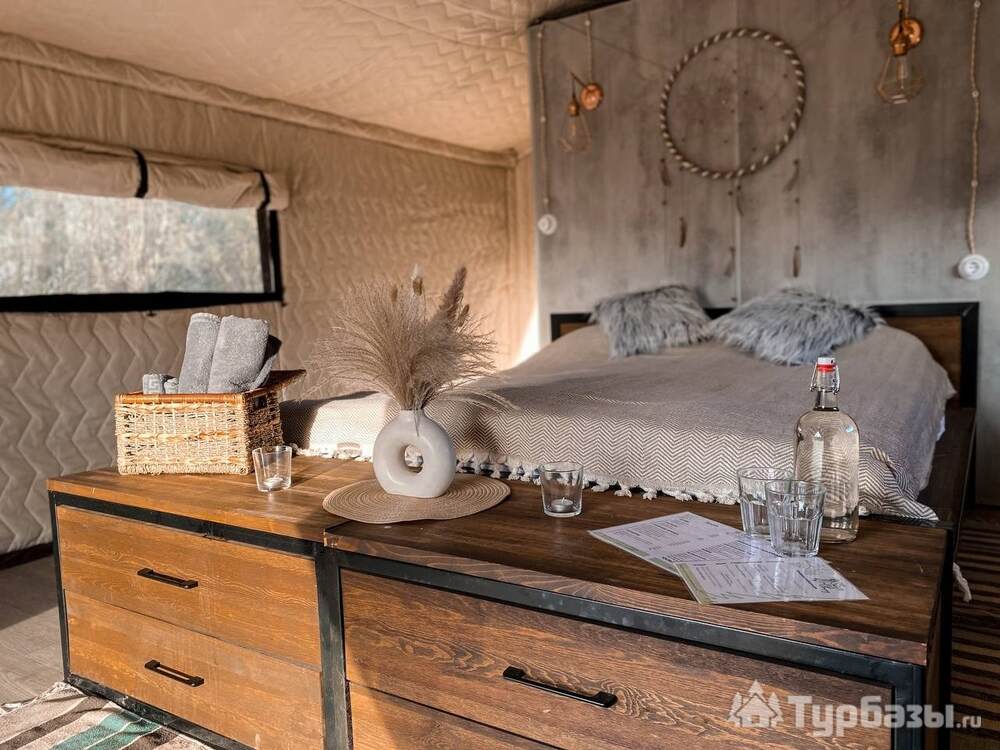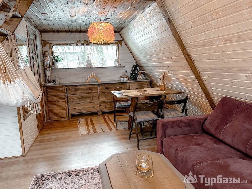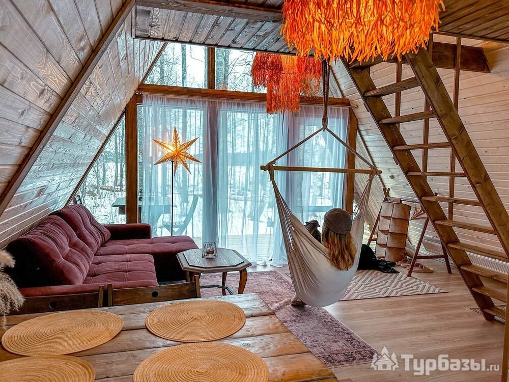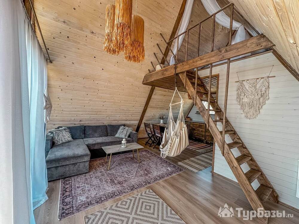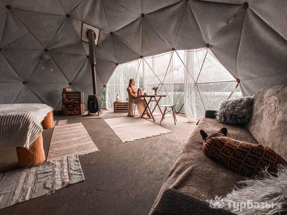 На территории представлены три основных формата жилья — A-Frame домики, safari-lodges и купольные «соты»/домики-сферы. Все юниты спроектированы для круглогодичного использования: тёплые полы, уютные спальни, террасы с видом на озеро и у многих — собственная лаунж-зона. Вместимость комплекса позволяет принять до ~45 гостей одновременно, поэтому объект хорошо подходит как для романтического отдыха, так и для небольших компаний.
