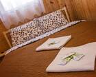 Двухэтажный коттедж с двумя спальнями (кровати двухспальные), кухня, душ и туалет раздельные, туалетные принадлежности. На первом этаже раскладной кожаный диван рассчитанный на двух человек, зал со столом, телевизором, кухней.