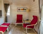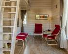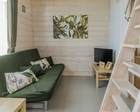 На первом этаже расположена гостиная и спальня с двуспальной кроватью.