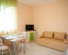 Дуплекс — это два вместительных номера под единой крышей. В каждом номере две небольшие спальни с размещением для двоих каждая, еще два спальных места на диване в кухне-гостиной. Внутреннее оборудование: постельные принадлежности на 6 человек, полотенца, сервировочная посуда, посуда для приготовления еды, отдельная варочная электроплита, холодильник, микроволновая печь.