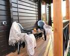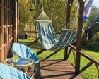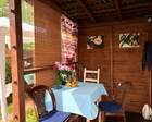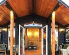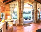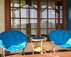 Недалеко на лужайке находится домик для гостей, построенный в стиле бунгало – с большой террасой и гамаком. В этой же части сада расположена баня, площадка для барбекю, шатёр, качели, гамаки, шезлонги и уютные места в саду для обедов и чаепитий. Ближе к озеру на своей территории расположен второй дом для гостей в стиле шале. Он имеет две террасы, широкое крыльцо, настил с шезлонгами перед ним и отдельный банный комплекс с террасой и площадкой для барбекю. Перед домом расстилается луг и дальше – лесное озеро, куда к собственному понтону ведёт тропинка с деревянным настилом.