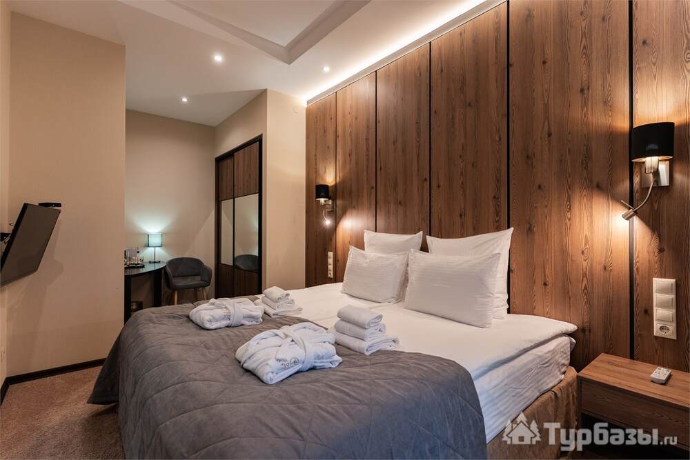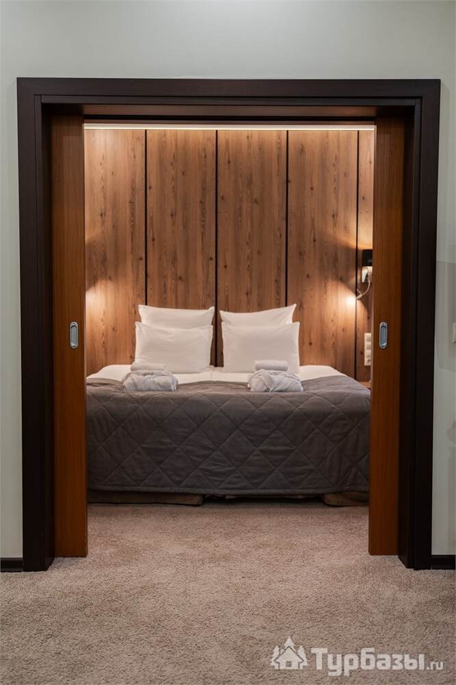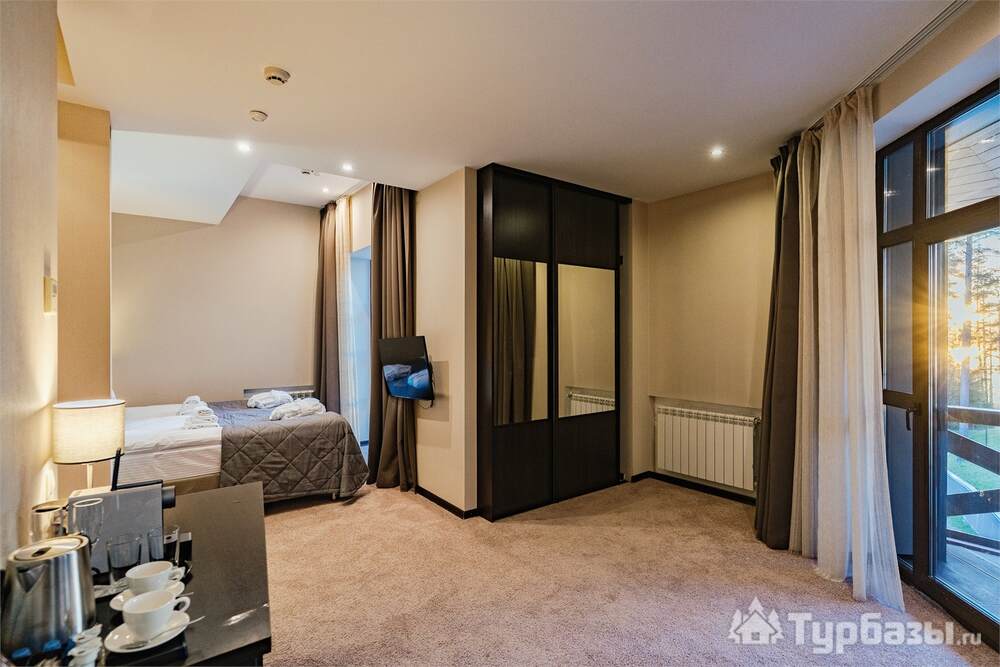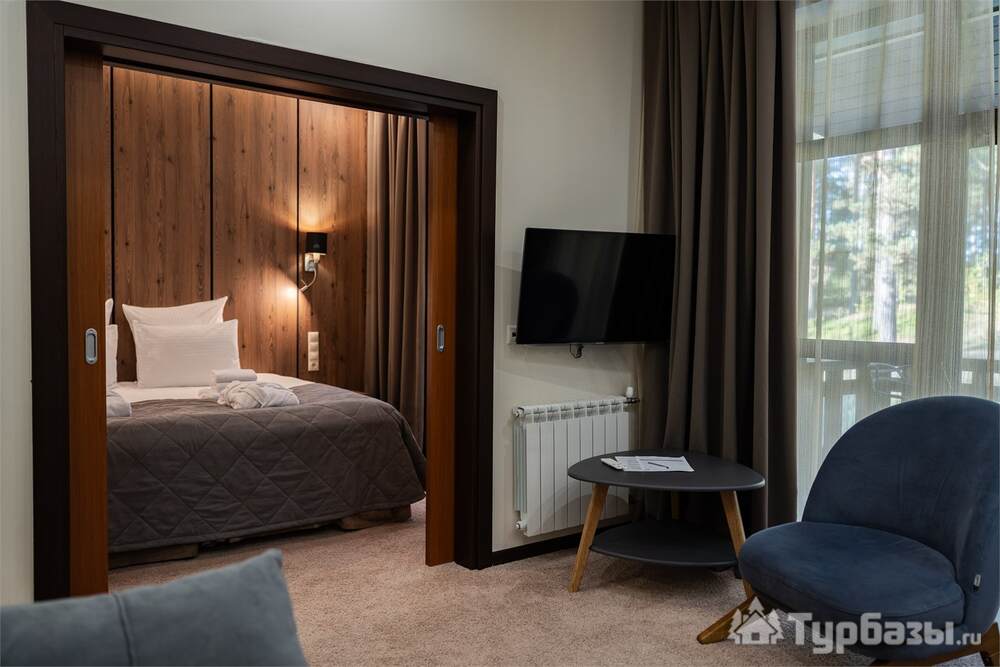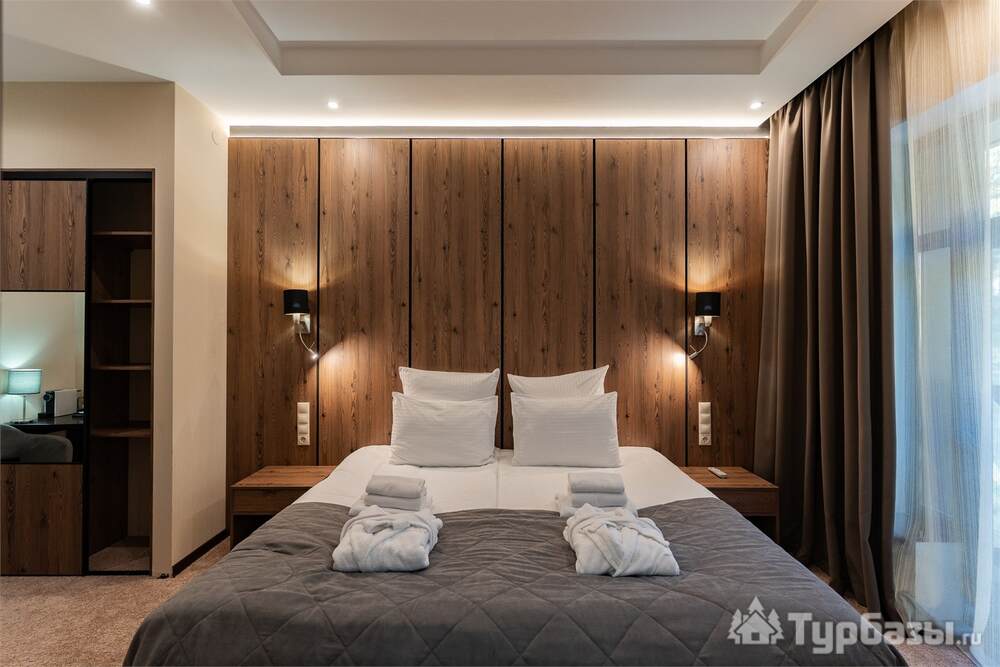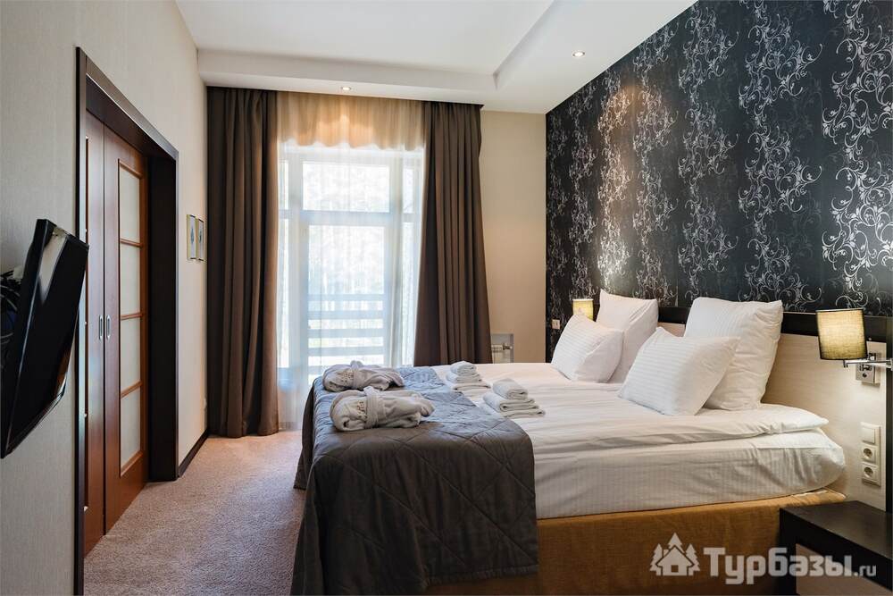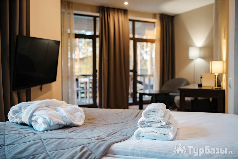 Номерной фонд совмещает уют загородного отеля и комфорт современного курорта: стандартные номера, семейные апартаменты и улучшенные люксы с видом на озеро или на лес. Во всех номерах — качественные кровати, климат-контроль, набор для чай/кофе и беспроводной интернет; в ряде категорий есть балконы и увеличенная гостевая зона. Для тех, кто хочет приватности, отель предлагает номера с отдельными террасами и выходом к прогулочным дорожкам парка.