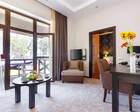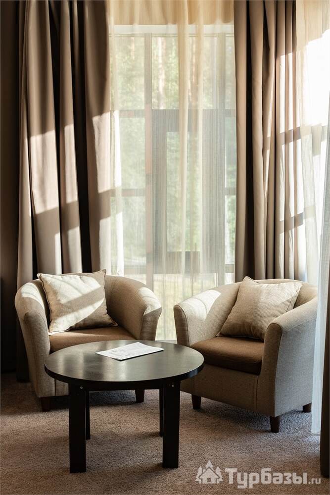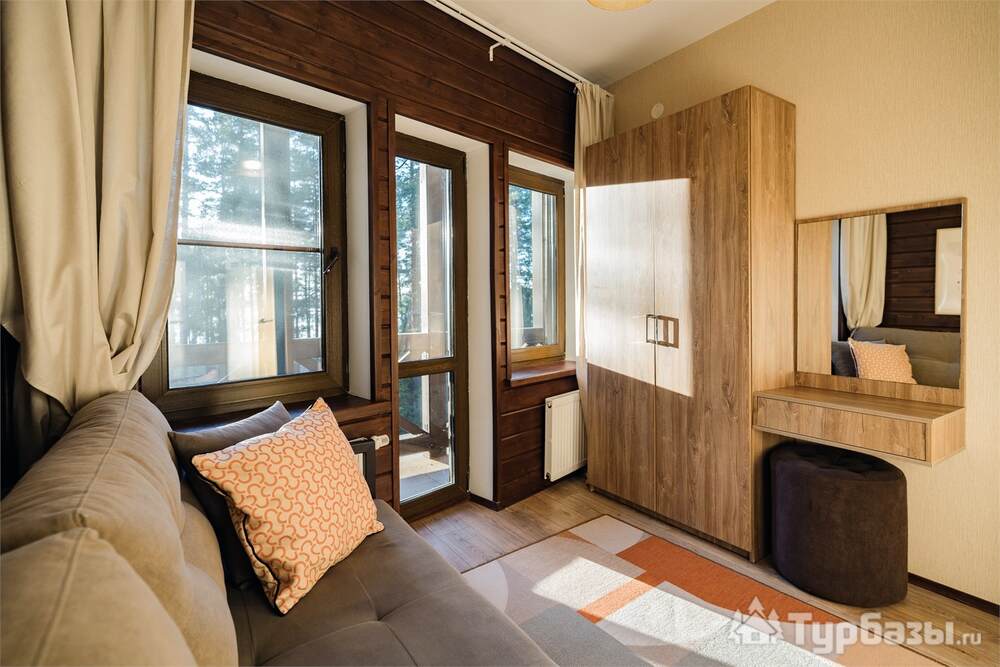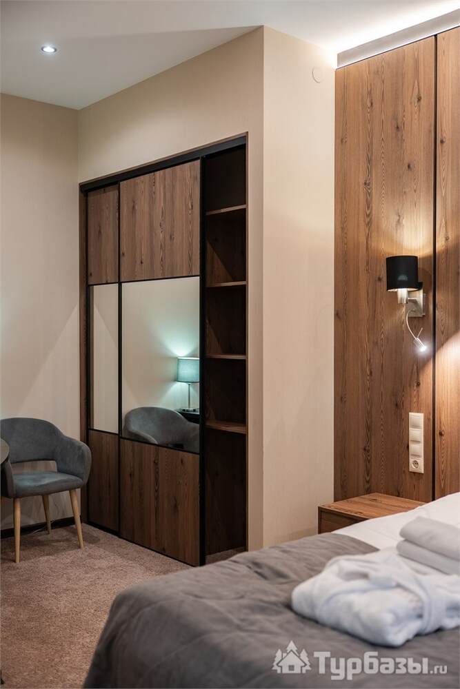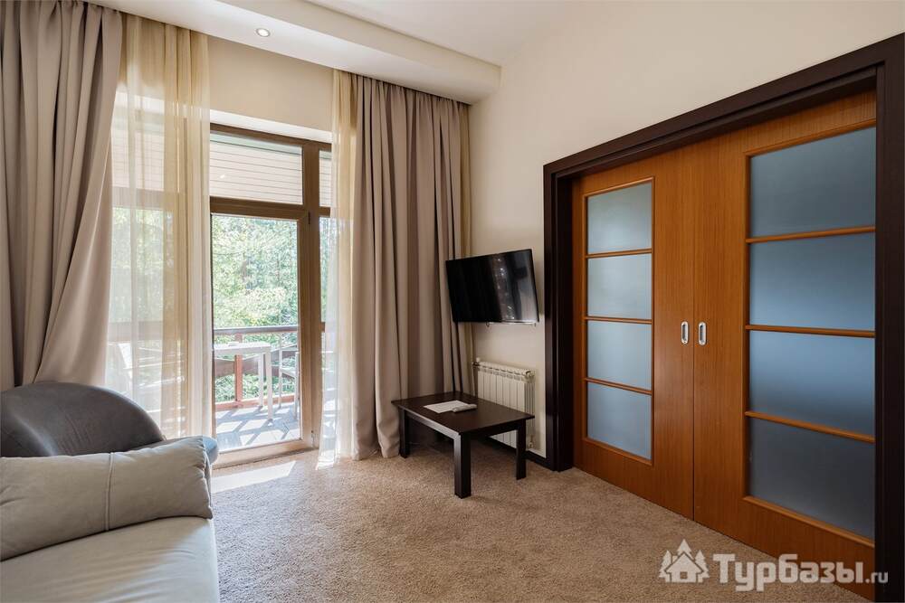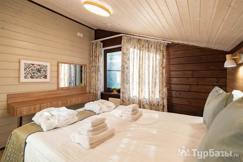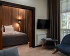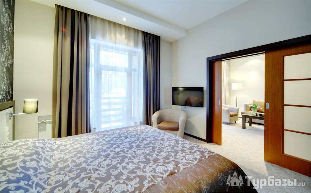 Номерной фонд совмещает уют загородного отеля и комфорт современного курорта: стандартные номера, семейные апартаменты и улучшенные люксы с видом на озеро или на лес. Во всех номерах — качественные кровати, климат-контроль, набор для чай/кофе и беспроводной интернет; в ряде категорий есть балконы и увеличенная гостевая зона. Для тех, кто хочет приватности, отель предлагает номера с отдельными террасами и выходом к прогулочным дорожкам парка.
