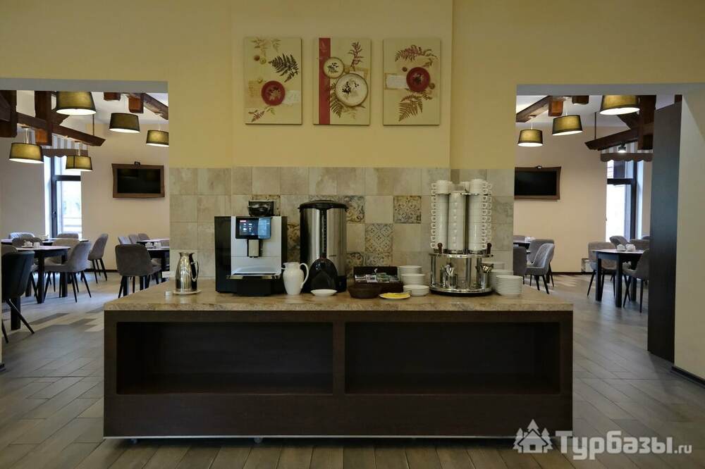 Ресторан Вереск предлагает сезонное меню, авторские позиции и банкетные программы; завтрак для проживающих сервируется по модели «шведский стол» или а-la-carte в зависимости от тарифа. Для праздников и свадеб предусмотрены пакеты банкетного обслуживания: от фуршета до полноформатного торжества с дегустацией меню и винной картой. В тёплое время работает летняя терраса с видом на озеро — удобная локация для ужинов на свежем воздухе.