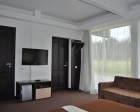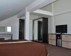 Коттедж сдается на 16 чел. Но можно его снять и на 6 чел. Это будет только первый этаж, полностью оборудованная кухня-столовая с двух- местным диваном и с двумя отдельными комнатами. В каждой комнате: двухспальная кровать (либо две односпальные), диван, трюмо, минихолодильник, шкаф, ТВ, душ, туалет.
