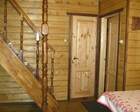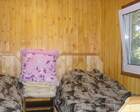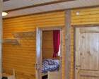 Состоит из 2-х половин, вместимость каждой до 8-человек. В доме есть сауна, душ, два туалета, по одному в каждой половине соответственно, телевизор, холодильник. В 1-й половине есть камин, так же в 1-й половине находится 3 спальни: в первой расположено 3 односпальные кровати, во второй 1 двухспальная, в третьей 1 двухспальная и 1 односпальная. Во второй половине так же имеется 3 спальни.