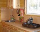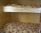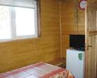 В спальне - 2 односпальные кровати, на кухне - газовая плитка, мойка, вся необходимая посуда для приготовления пищи и для еды, небольшой диванчик. Перед домом - стол, скамейка, мангал, до воды - 30 м. Удобства в отдельном помещении в центре базы.