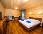 Для проживания предоставляются комфортные номера и дома-срубы. Дети в возрасте до пяти лет размещаются бесплатно. При оформлении в аренду одного из тридцати предлагаемых коттеджей приятным дополнением становится доставка завтрака.