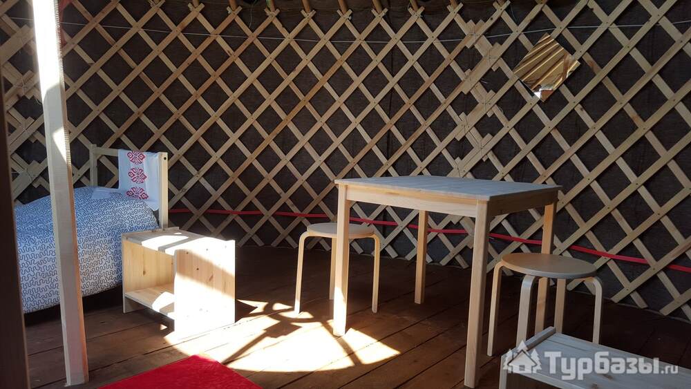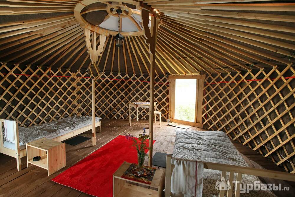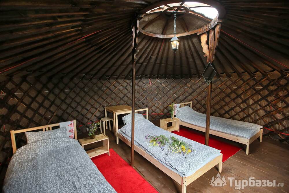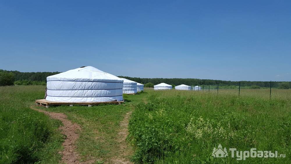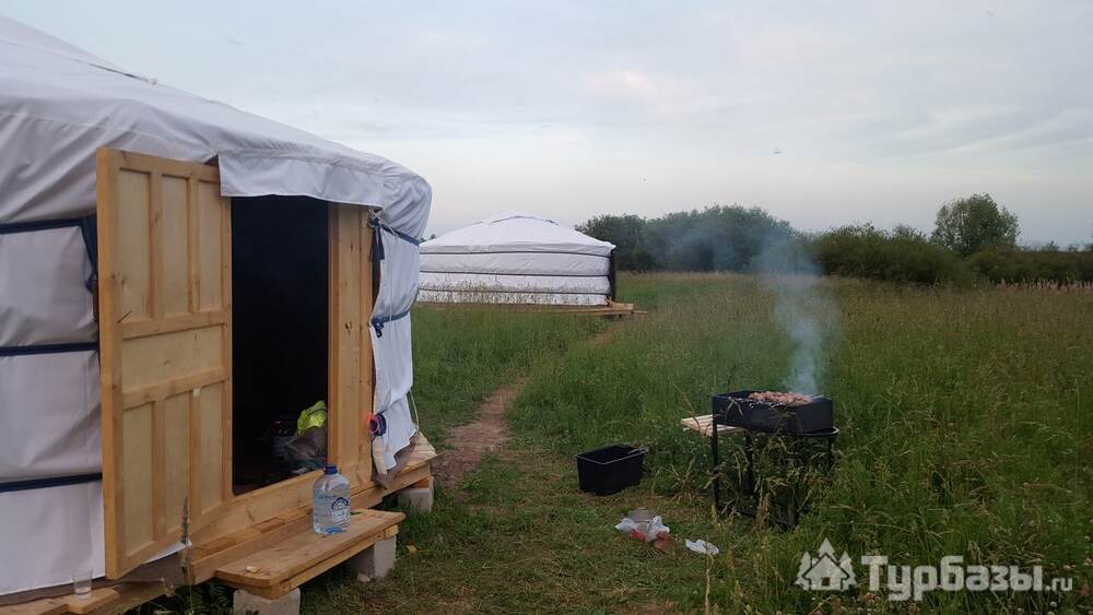 На базе есть традиционные монгольские юрты, кемпинговая зона для палаток, парковка, мангалы и беседки, баня, а также ресторан/кухня для тех, кто не хочет готовить сам. Инфраструктура рассчитана на простой и комфортный отдых — есть туалеты, умывальники и точки с электричеством в зоне кемпинга.
